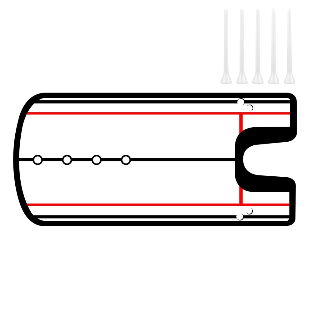 2. Printed line for helping line up eyes to the putting line and how far should the putter go back.